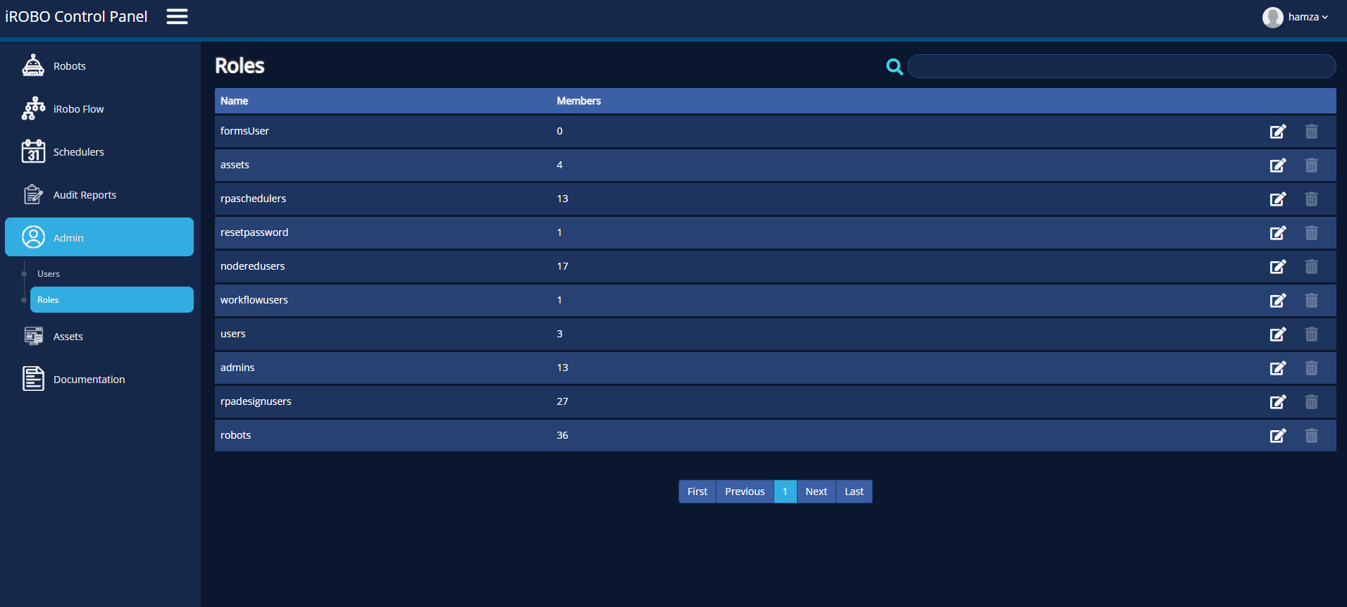 Roles page allows user to manage user's role and authorization in iRobo system. From Roles page, user can grant/ deny permissions on iRobo system functionalities to system user accounts.