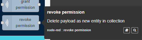 API revoke permission Node is used to revoke permission (Update, Delete, Insert) on item of a collection of entities/ assets in Database DB.