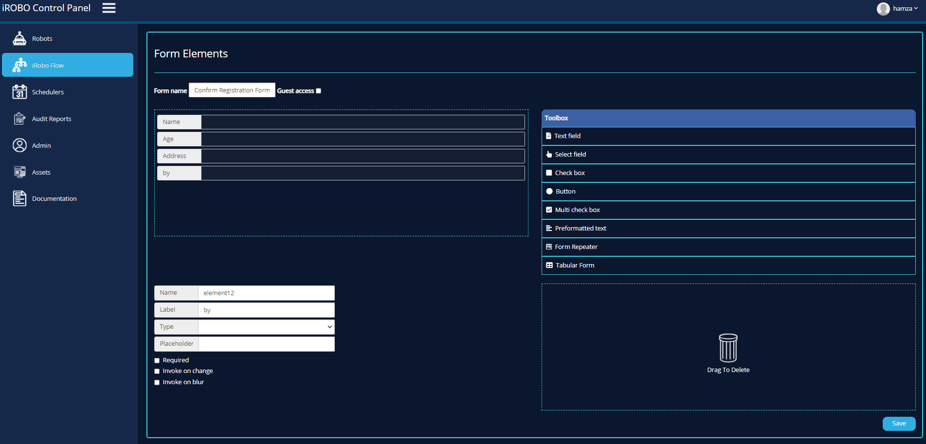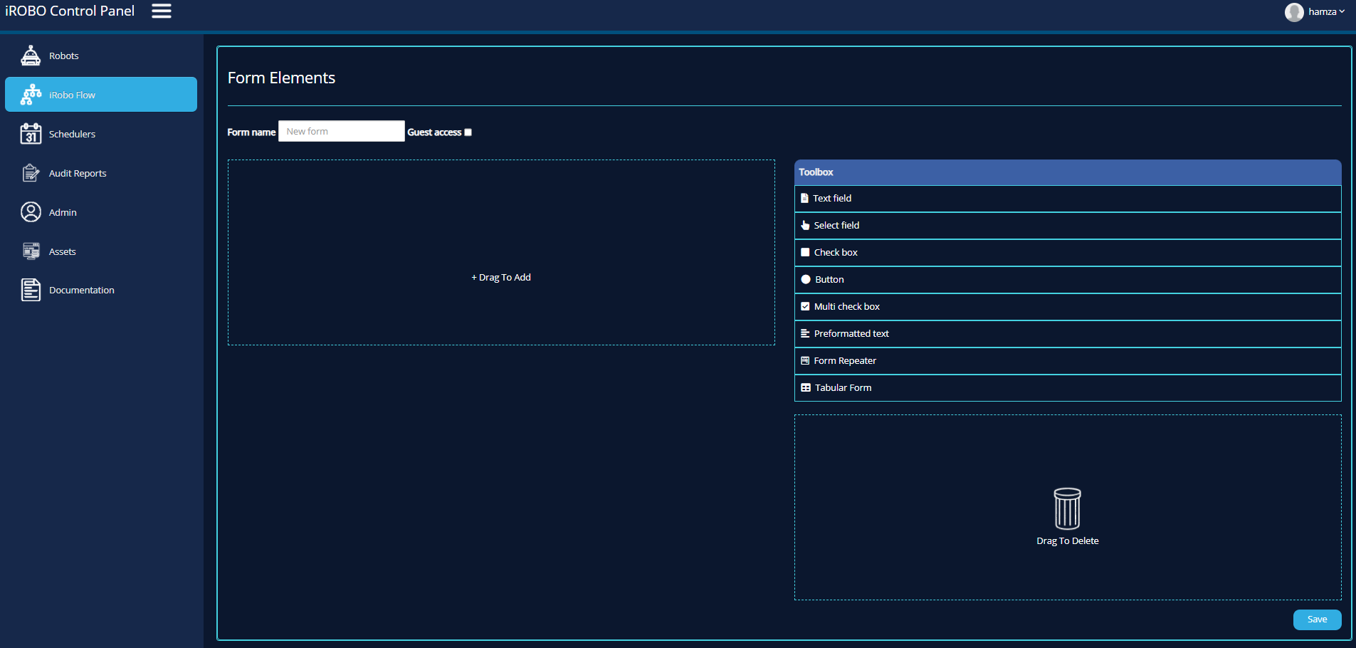 - Then click on Forms from iRobo Flow in iRobo Menu.