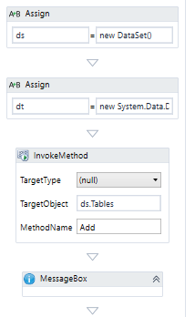 To better understand Invoke Method Activity, let's build an automated process that trigger a method to add Table to Data Set.