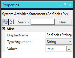 - Select String from TypeArguments in Properties Panel, and then assign OutputText of slides to the Values Properties Panel as shown in the image below.