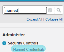 - Type Named credentials in the Search area. Then, select Named credentials under Security controls tab as shown below.