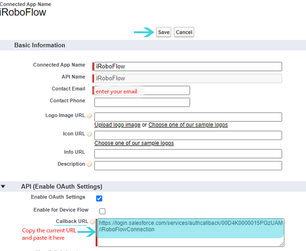We should set some configurations in SalesForce to create a connection that enables SaleForce to integrate with iRoboFlow.