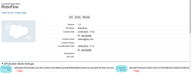 - Before we proceed in creating the Auth Provider app. Copy the Consumer Key and Consumer Secret from current created App and save it in a Notepad file for later as shown in the above image.