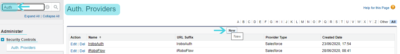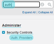 - Type Auth in the Search Area. Then, select Auth.provider under Security controls tab as shown below.