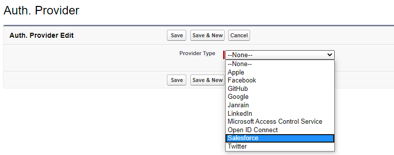 - Select the Salesforce Option from drop down menu in Provider Type as shown below.