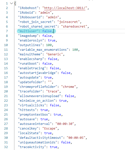 Settings button: Settings File is opened as shown in the image below. Change iRobohost to be thebsame as iRobo Studio and iRobo Control Panel.